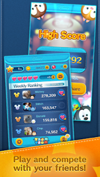 LINE:ディズニー ツムツムをプレイしているLINEの友だちがいる場合、ランキング上でスコアを競ったり、プレイに必要な「ハート」を交換したりとソーシャル的にゲームを楽しめます。LINEで繋がっていてもなかなか話す機会のない友だちとゲームを通して交流できるチャンスでもあるかもしれません。